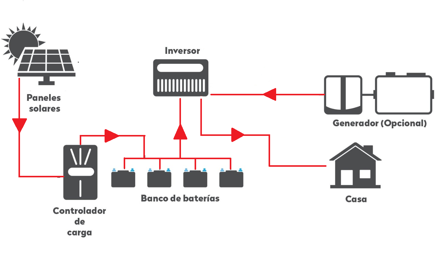 Un sistema fotovoltaico aislado es una instalación solar independiente de la red eléctrica. Utiliza paneles solares para convertir la luz del sol en energía eléctrica, que se almacena en baterías. La energía almacenada se usa a través de un inversor que convierte la corriente continua (CC) en corriente alterna (CA) para alimentar aparatos eléctricos. Es ideal para lugares remotos o zonas sin acceso a la red electrica pública, proporcionando una fuente de energía autónoma y sostenible.