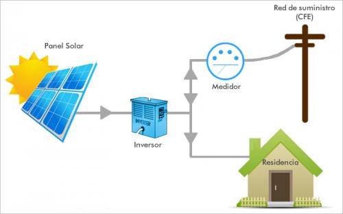 Un sistema fotovoltaico interconectado a la red genera energía mediante paneles solares y la envía a la red eléctrica pública. La energía producida que no se utiliza en el hogar se inyecta a la red, lo que puede generar una bolsa de energia para reducir la factura eléctrica en meses posteriores. En este sistema no se requieren baterías, ya que la red actúa como respaldo cuando los paneles no producen suficiente energía. Es una opción eficiente y económica para reducir el consumo de electricidad convencional y aprovechar fuentes renovables.